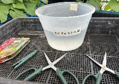 採苗時のハサミとコンテナはロット毎に管理し、ロット作業毎の定期的な消毒、洗浄を行い、