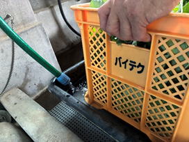 上水道の流水で苗の基部を洗浄し、その後風乾する。 |